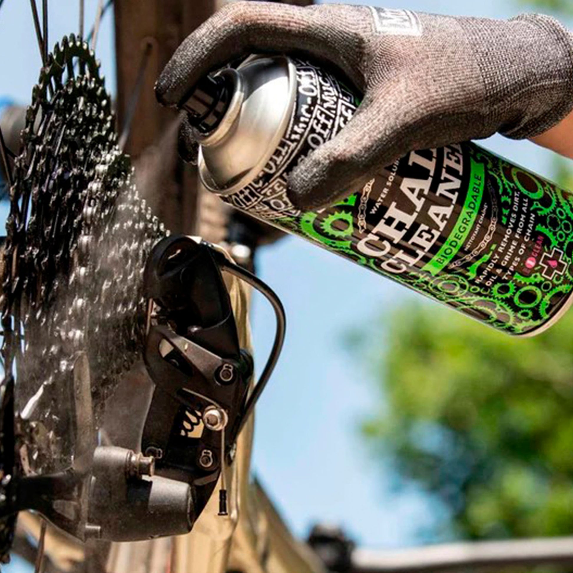 - Reinigt Kette, Kassette, Schaltwerk und Kettenblätter effektiv
