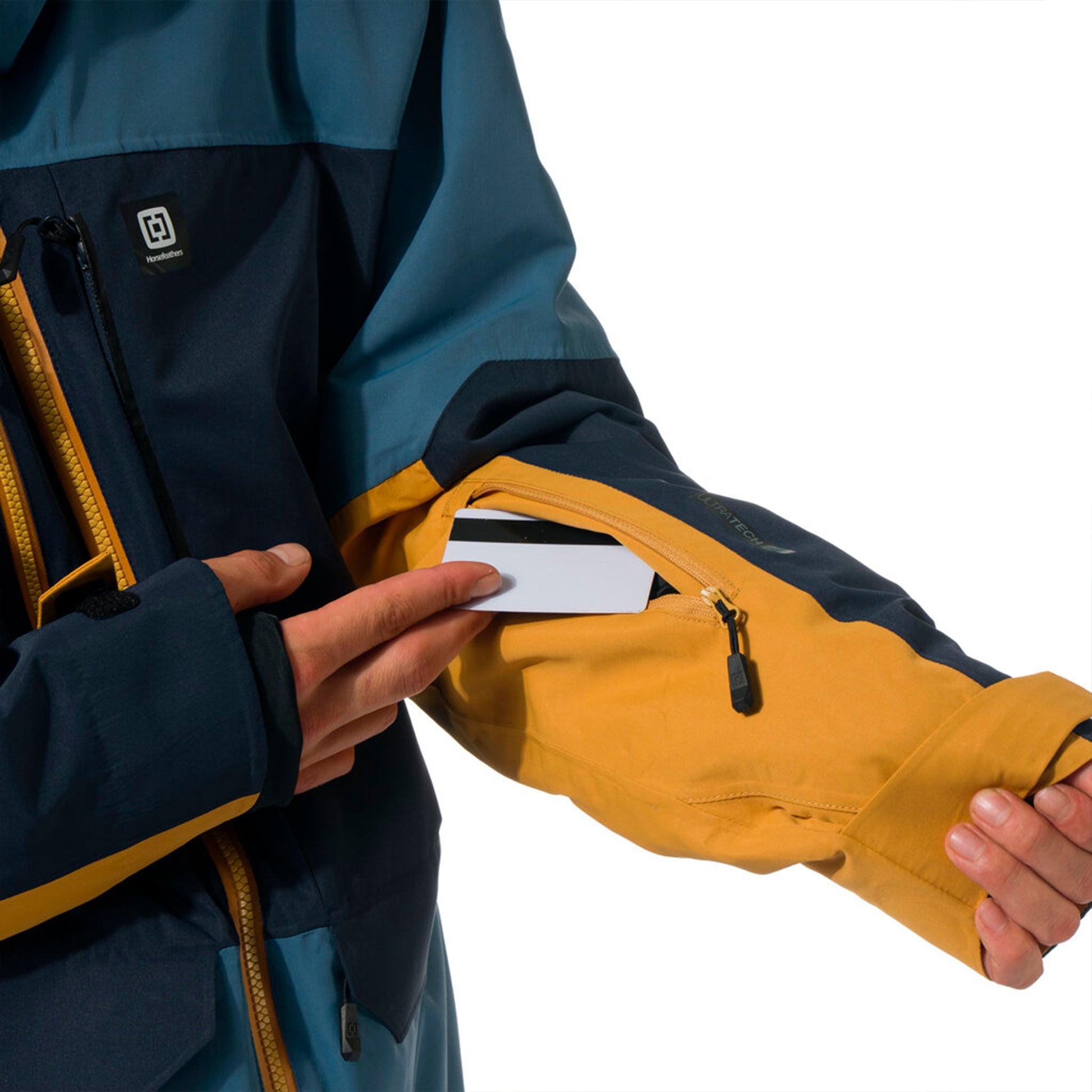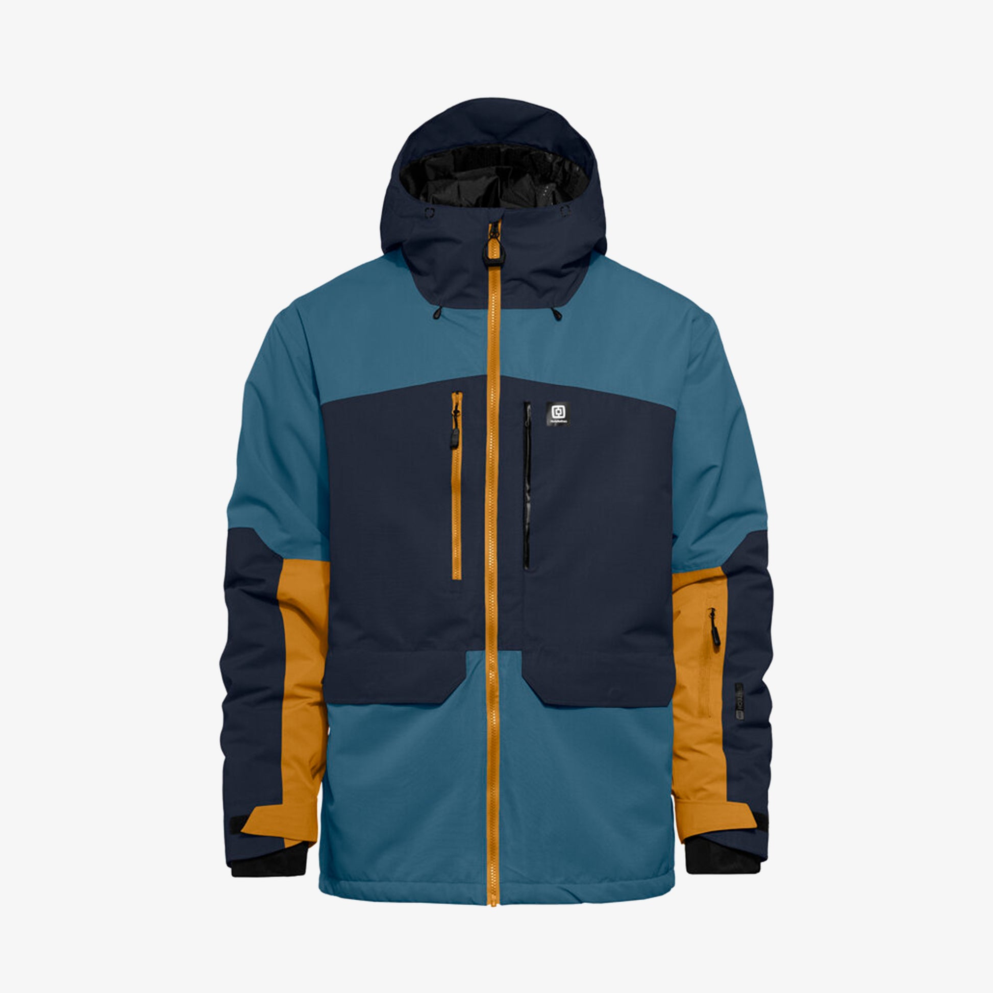 - Smartes Taschen-Layout: große Cargo-/Brusttaschen, Skipass-Pocket am Ärmel, fleecegefütterte Handwärmer