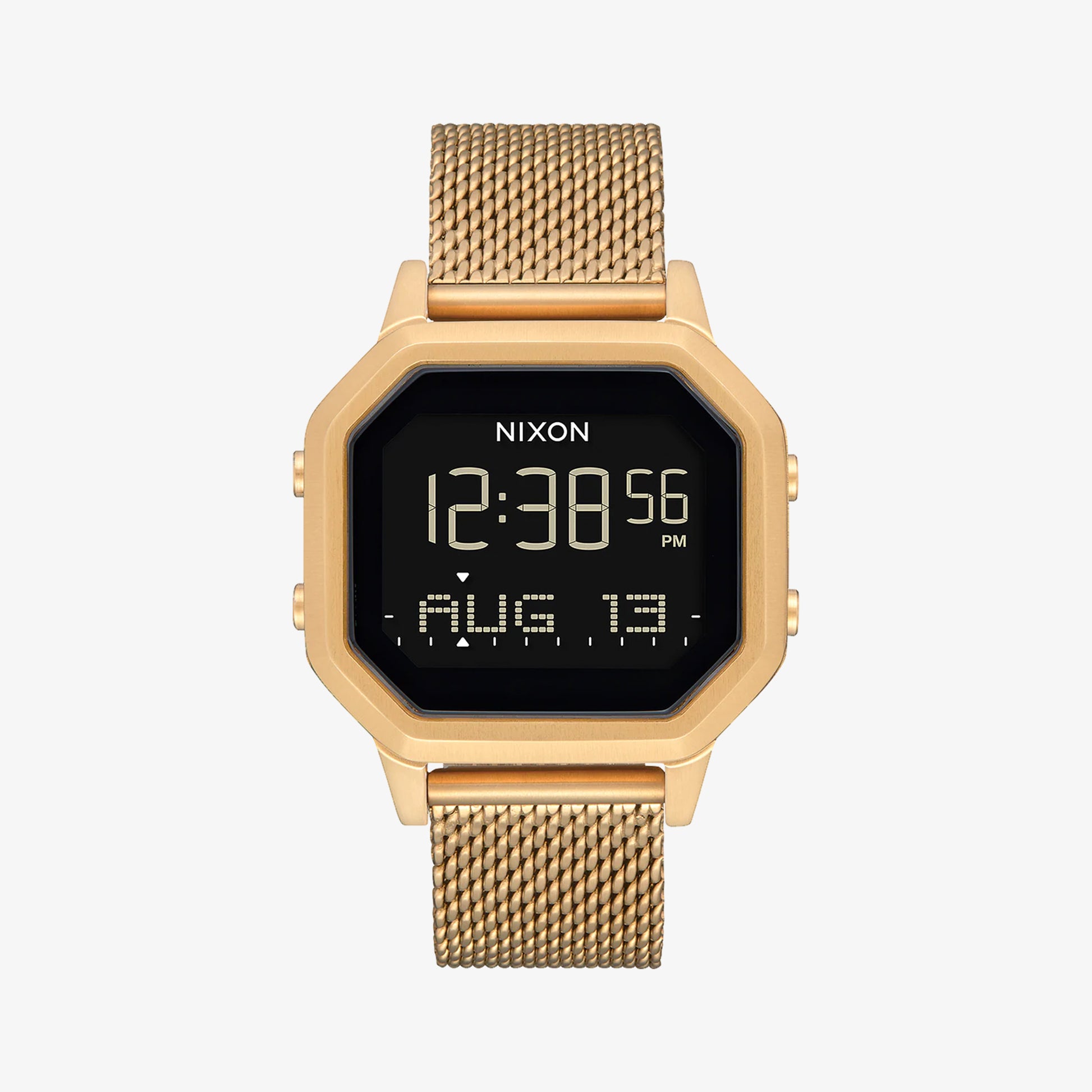 Die Nixon Siren Milanese – All Gold verbindet sportliche Funktionalität mit einem edlen, monochromen Gold-Look. Inspiriert vom Surf- und Beach-Lifestyle ist die Siren eine digitale Damenuhr, die sich sowohl im Alltag als auch im Wasser bewährt. Das feine Milanese-Edelstahlarmband sorgt für einen eleganten, modernen Look und passt sich angenehm dem Handgelenk an. Dank digitalem Display mit Zeit-, Datums-, Alarm- und Timerfunktion bietet die Siren praktische Features für einen aktiven Lifestyle. Das wasserfeste Gehäuse macht sie zum zuverlässigen Begleiter am Strand, beim Sport oder in der City.